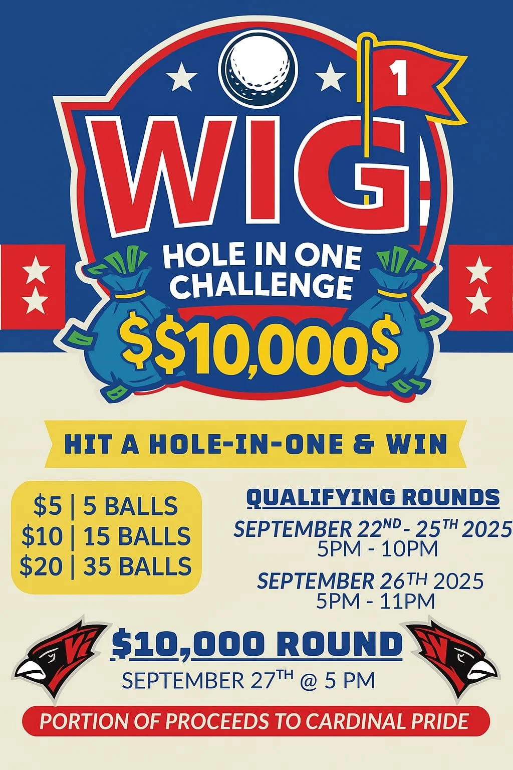 ALL qualifiers are invited back to WIG Saturday September 27th from 5pm - 7pm for your shot to hit a hole-in-one and WIN $10,000!